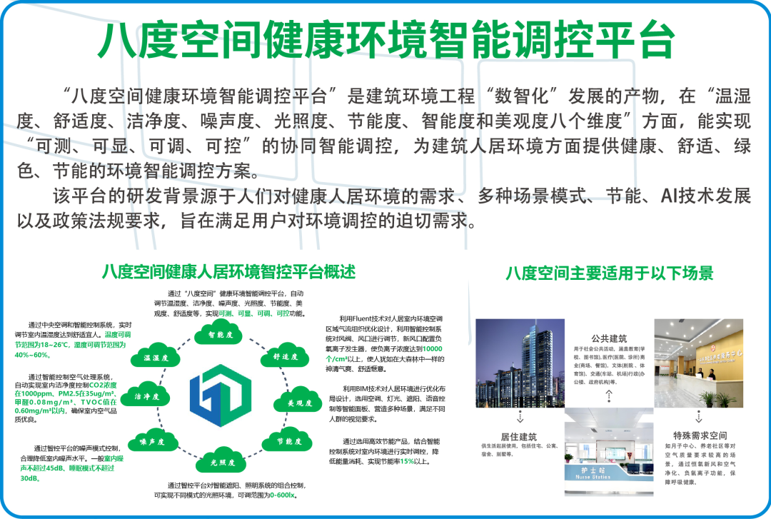 在消费升级与健康意识觉醒的当下,健康人居理念已深入人心,消费者对于居住环境的需求早已超越基础的居住功能,将健康、舒适、环保、安全置于核心首位。在国家“双碳”目标与河北省“绿色建筑规模化发展”战略的指引下,新众业建设集团将绿色环保理念深度融入发展基因。在现代建筑室内环境调控领域,公司突破传统“单一参数控制”局限,创新性研发并应用“八度空间”智能调控技术,以“温湿度、舒适度、洁净度、噪声度、光照度、节能度、智能度、美观度”为核心,构建起“技术创新—场景落地—产业带动”的发展路径。该技术通过能源梯级利用、动态负荷预测与光热耦合调控算法实现节能降碳,依托双级过滤与负离子活化技术保障洁净环保,借助统一物联网平台联动空调、新风、照明、窗帘等设备达成智能协同,全方位提升建筑室内环境品质。